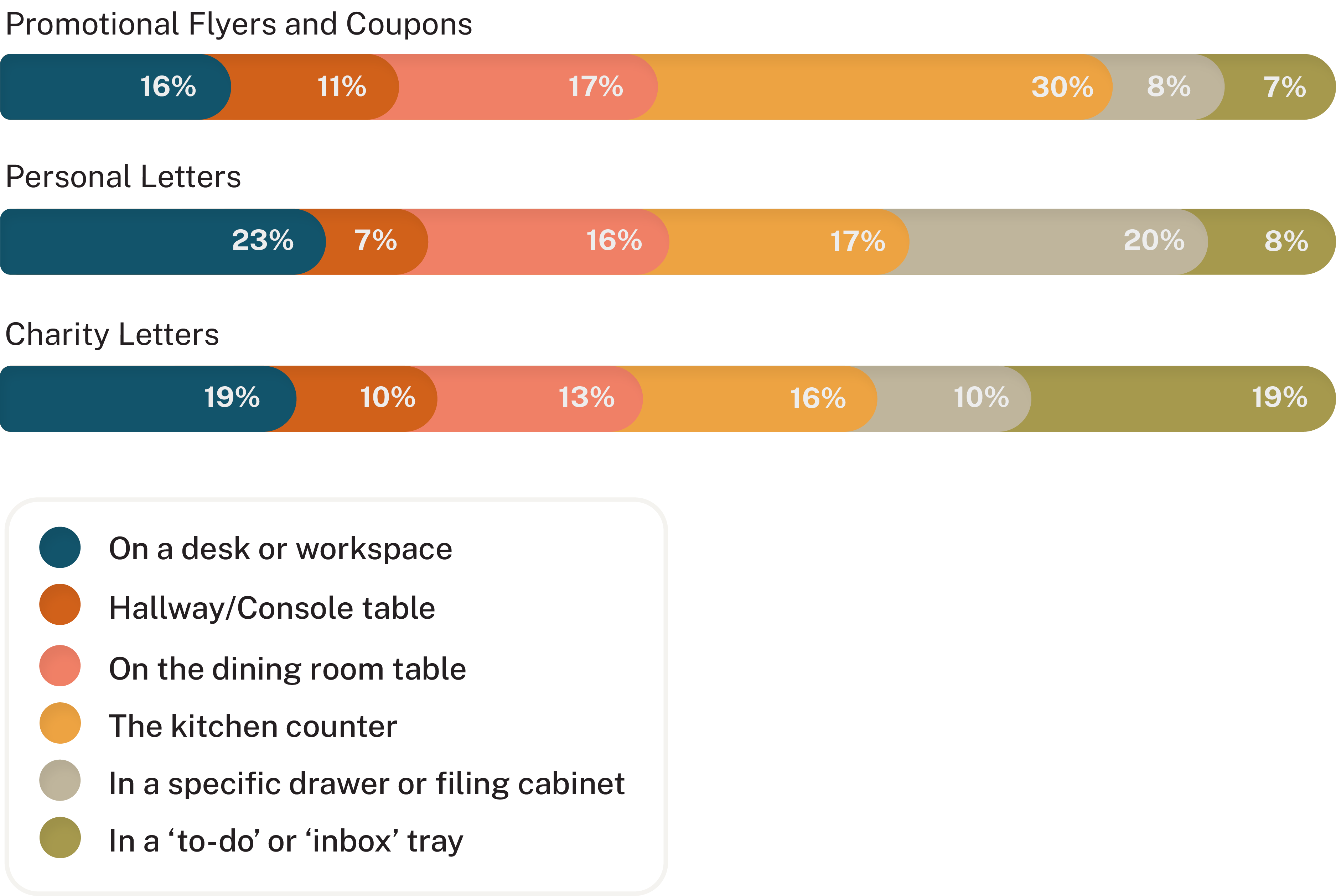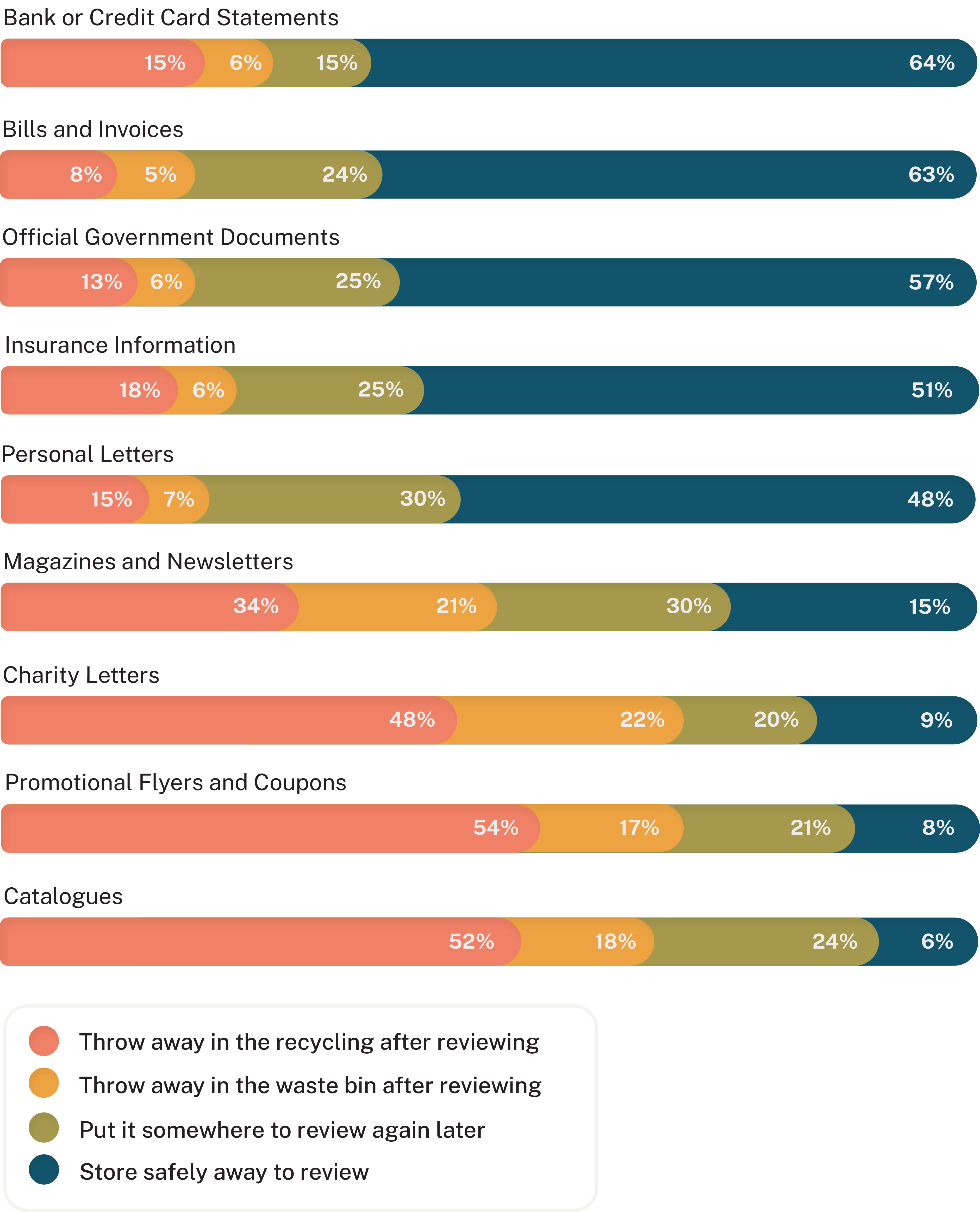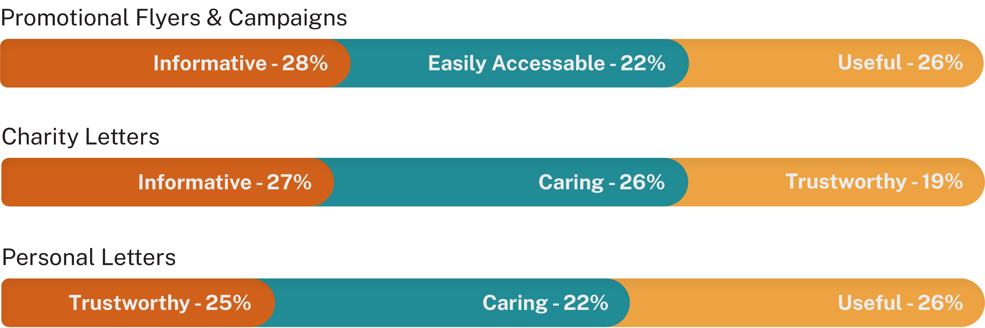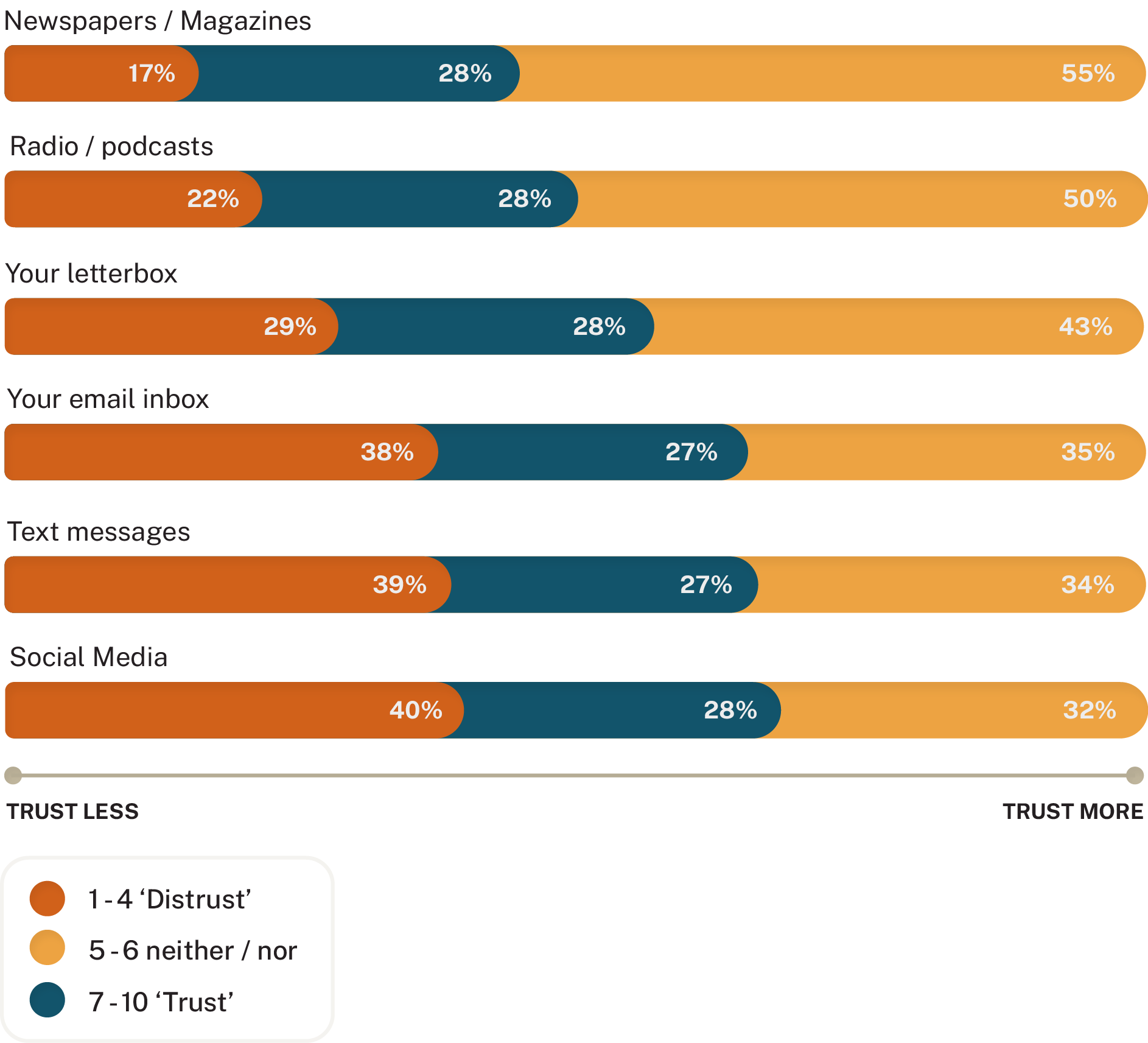 Compared to Social Media, Text messages, and email, there are lower levels of ‘distrust’ in the information received through the letterbox, and conversely higher levels of ‘trust’.